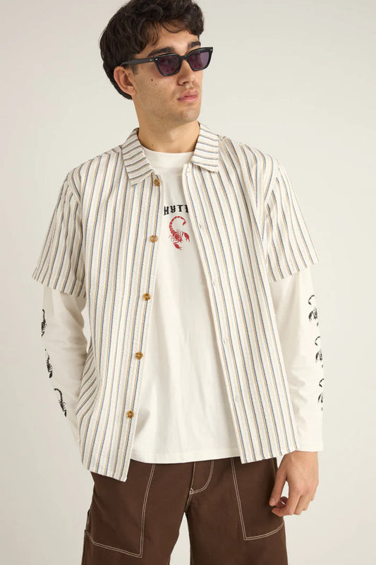 Rhythm Mens Seersucker Stripe Short Sleeve Shirt