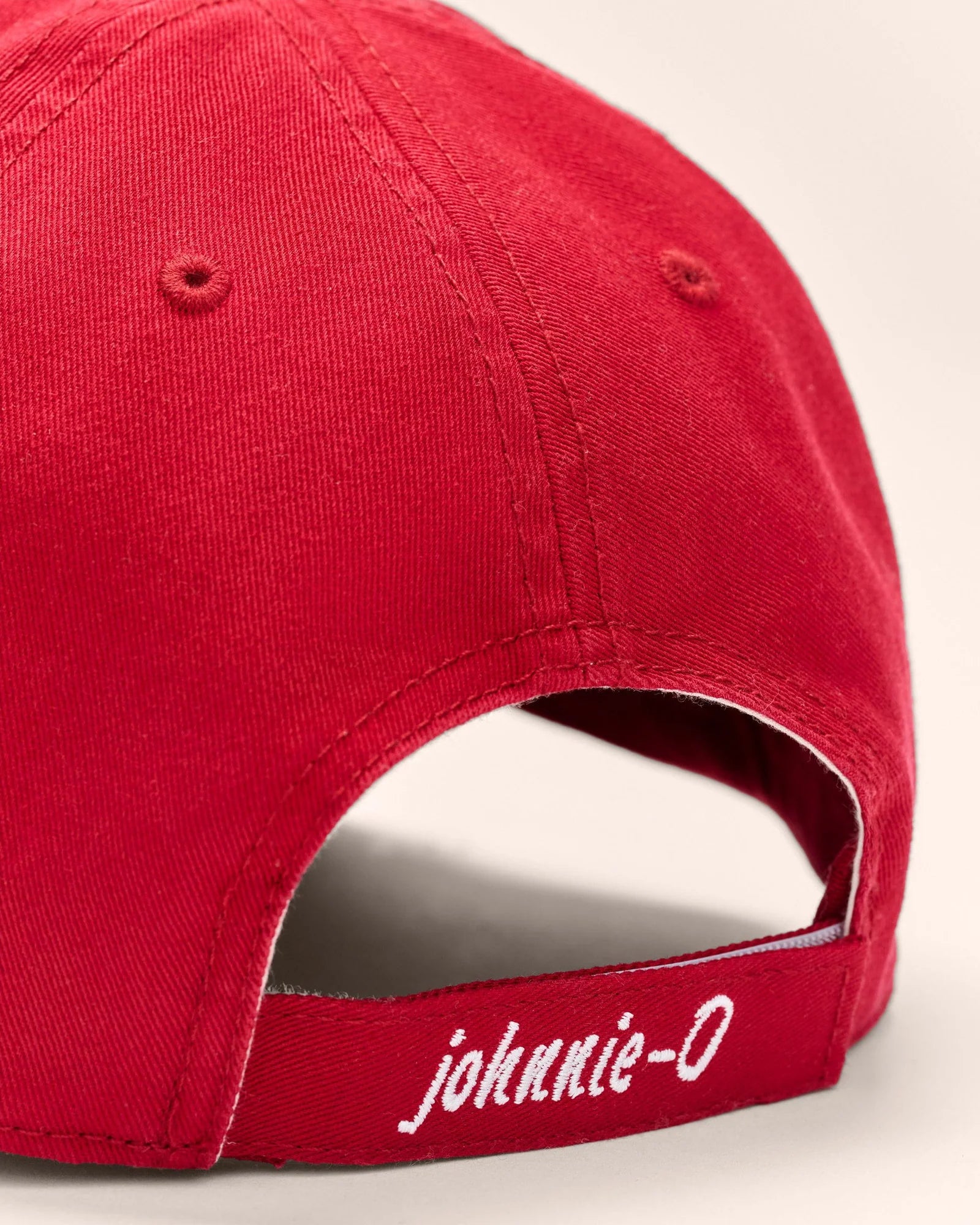 -Adjustable Velcro strap with johnnie-O signature embroidery