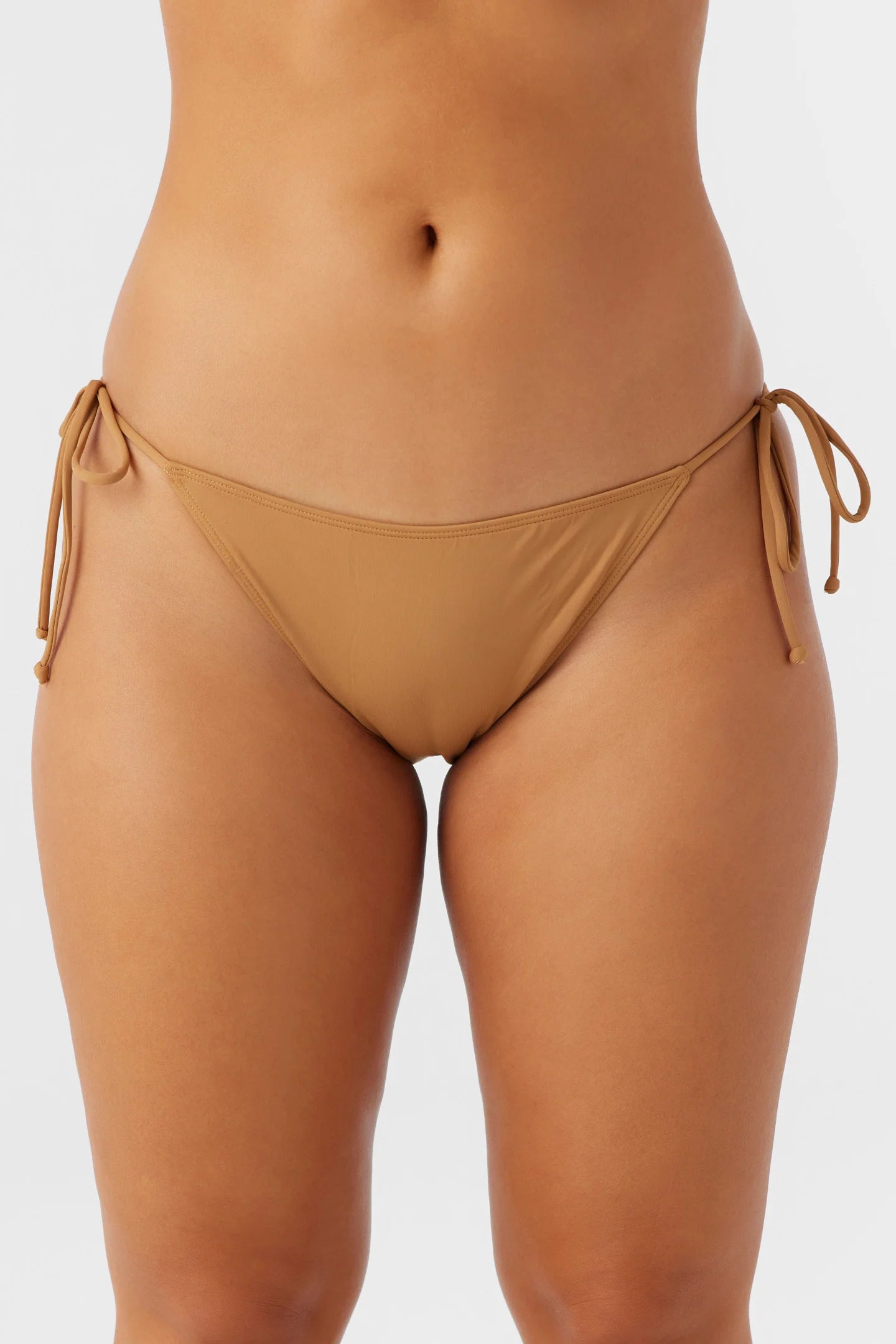 The beach is waiting. This is a solid color bikini bottom that has a side tie design and medium coverage fit.