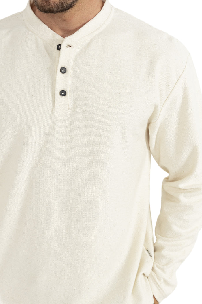 The Vintage Terry Long Sleeve Henley in Natural offers a vintage-inspired fit with soft terry fabric. Designed with a button closure and washed for a lived-in feel, it’s a comfortable go-to layer.