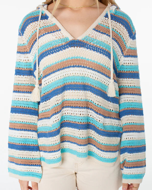 The Hippie Love sweater is an essential spring piece. Featuring a detailed knit and a relaxed fit, this sweater is ideal to throw on over a layering piece or a bikini after a day near the water.
