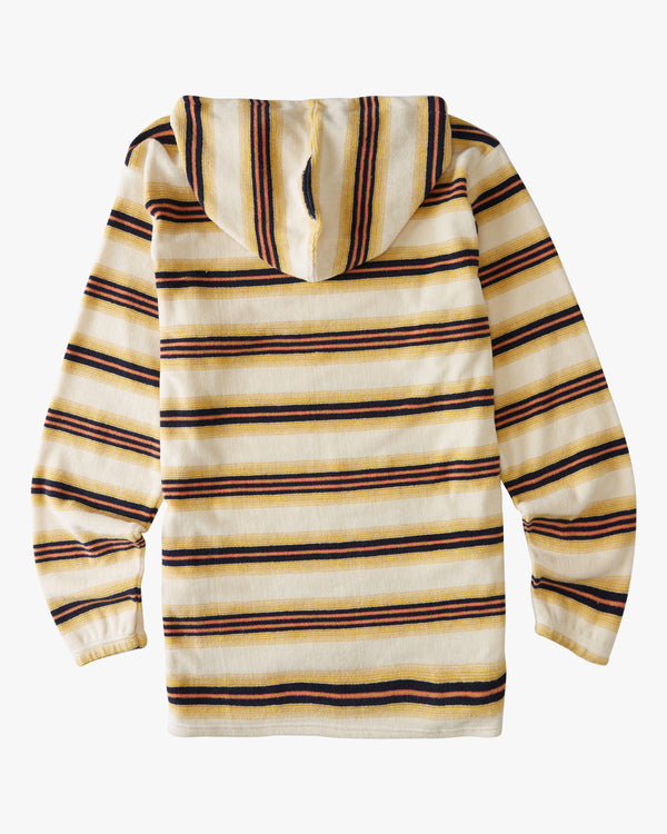 Le pull Flecker Diego est confectionné en jersey rayé imprimé ultra doux qui a été lavé avec un assouplissant pour une sensation de confort supplémentaire, afin que vous puissiez le porter toute la journée. Il présente un style pull avec capuche réglable, poignets élastiques, poche kangourou et bordures avec logo en arc.
