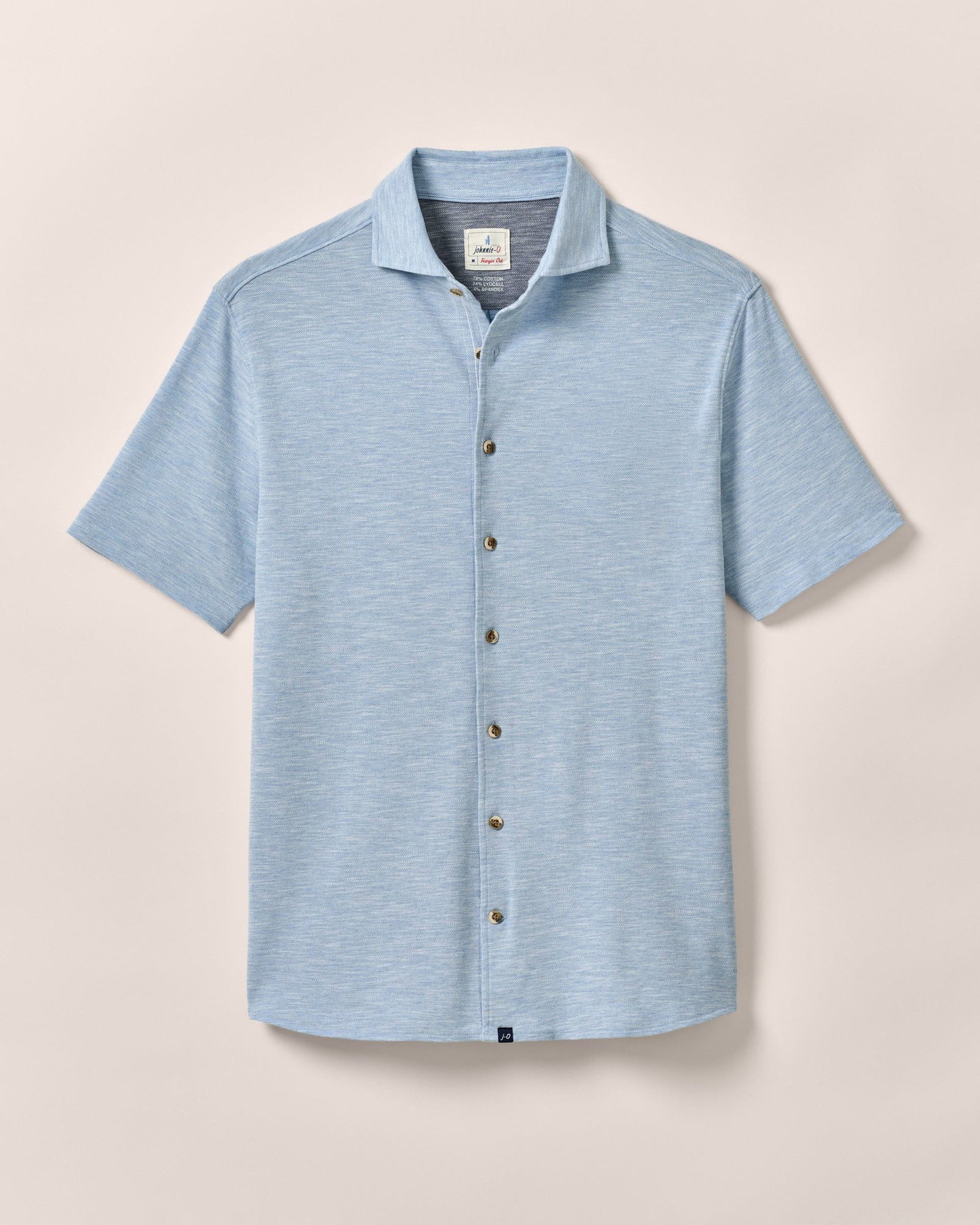 This knit button-down from our Hangin' Out Collection—designed to look its best untucked—is crafted with a comfortable stretch blend of slub cotton that offers just the right amount of texture and performance. But where this shirt really stands out is in the details: chalk-edged buttons add a subtle pop, the trackstitch pattern on the placket brings dimension and a unique touch and the cutaway collar adds a refined vibe that pairs perfectly with a sport coat when the occasion calls for it.