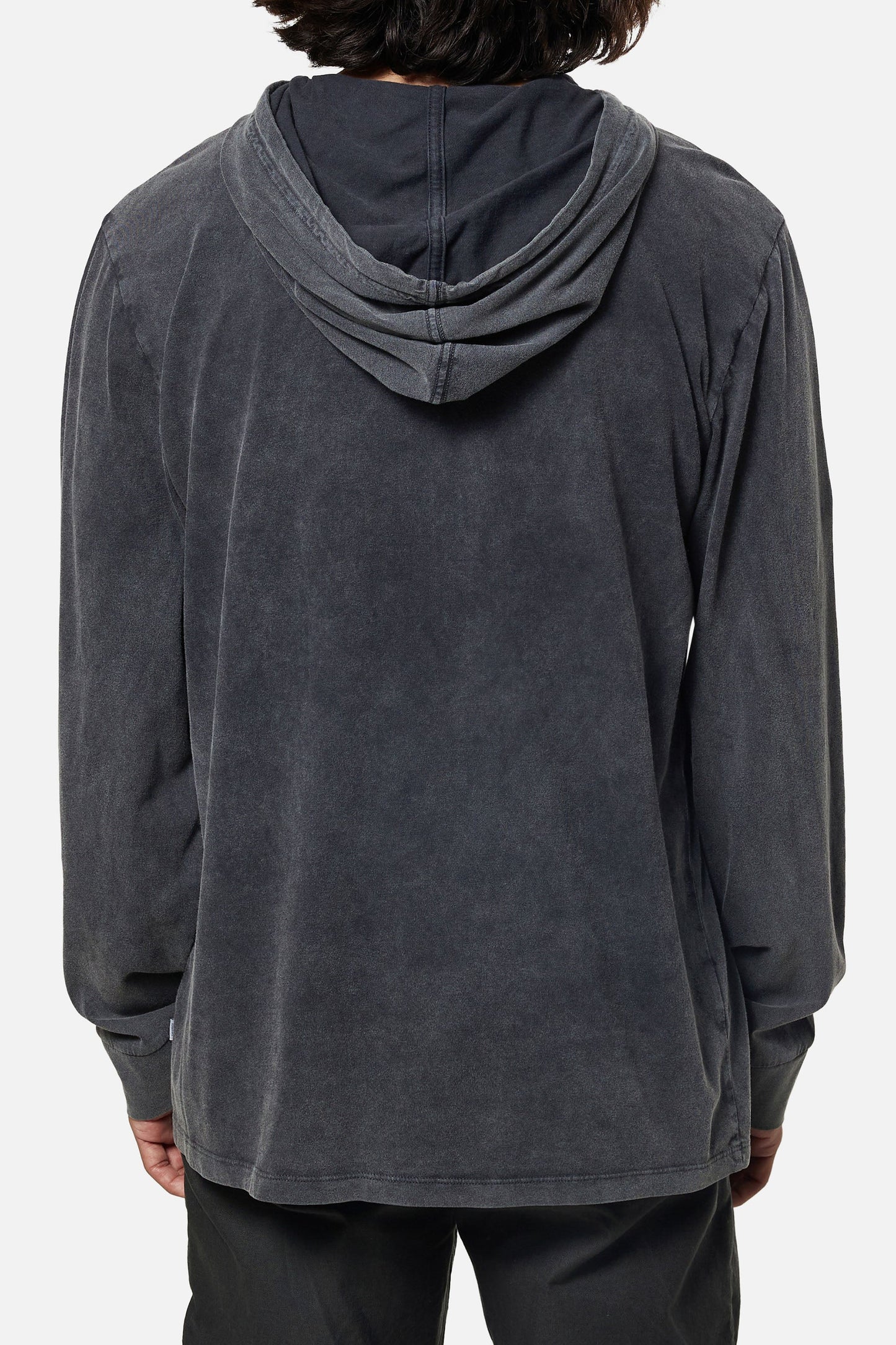 The Mesa Hide Pullover is made from a custom dyed 100% cotton jersey and features a three-button placket and pullover hood.