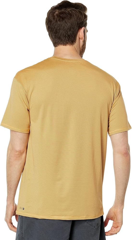 You can rely on the Solid Streak Short Sleeve Surf Tee for men to block burns and rashing before they start. And it does it with a soft, brushed-cotton feel similar to your favorite t-shirt. Chlorine resistant and enhanced with UPF 50 sun protection Even better, its loose, comfortable fit won't ride up. So there's no tugging or pulling down to keep your skin covered. And supreme wicking technology has this surf tee drying extra fast.