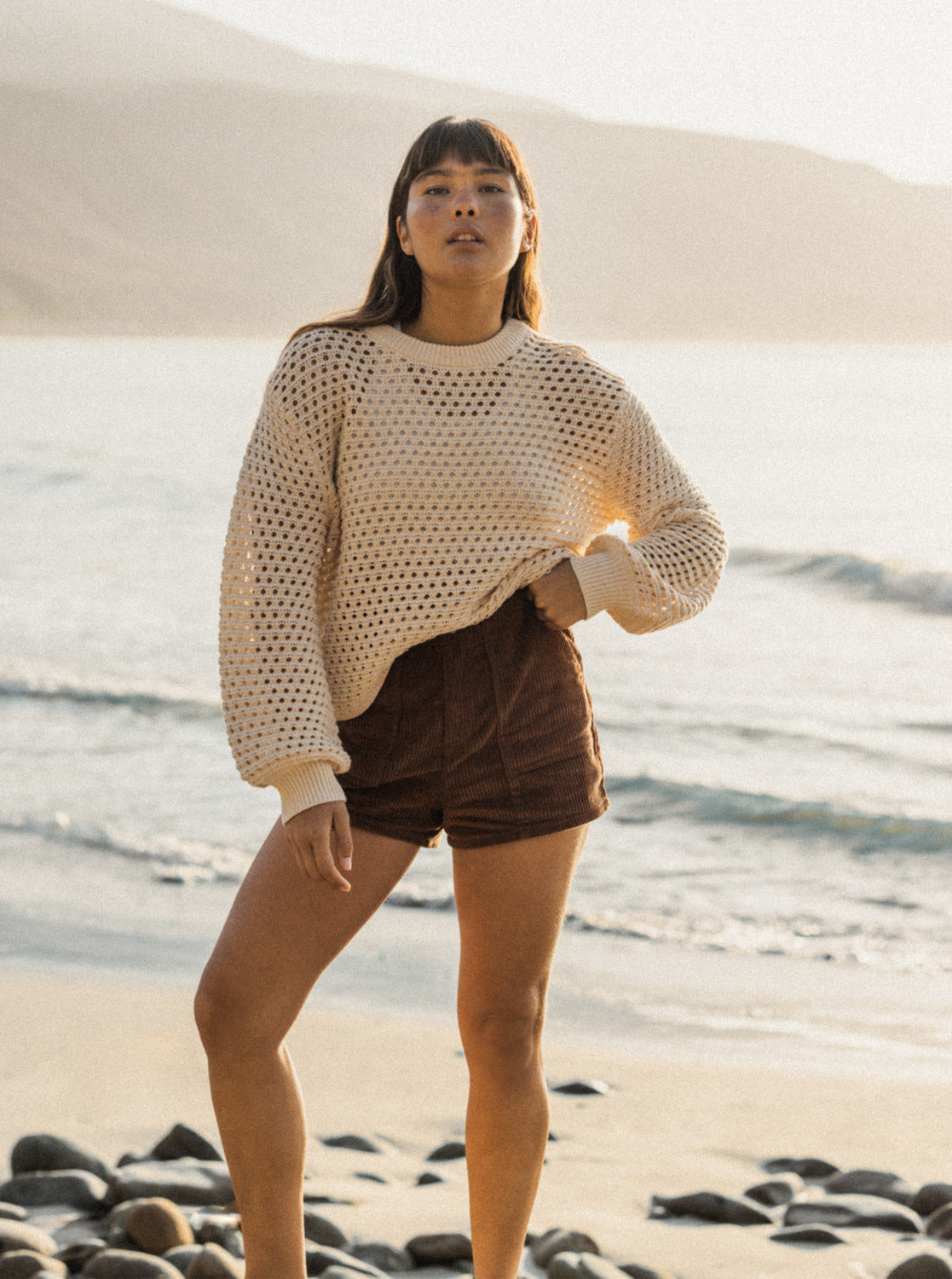 Découvrez le confort et le style de notre pull ROXY California Lover, confectionné dans un mélange de coton et d'acrylique de poids moyen avec une coupe à épaules tombantes, une encolure ronde et des manches ballon. Rehaussez votre look avec son détail en tricot ajouré.
