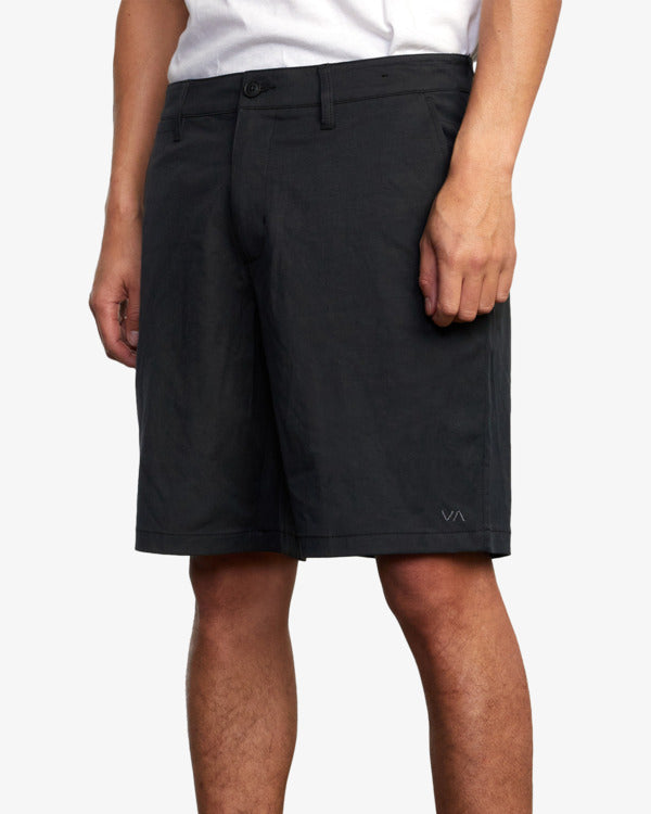 Made of 4-way stretch heathered fabric, these 19" hybrid shorts protect you from the elements with a durable, water-resistant finish. The versatile design features a fly-and-button closure with pockets.