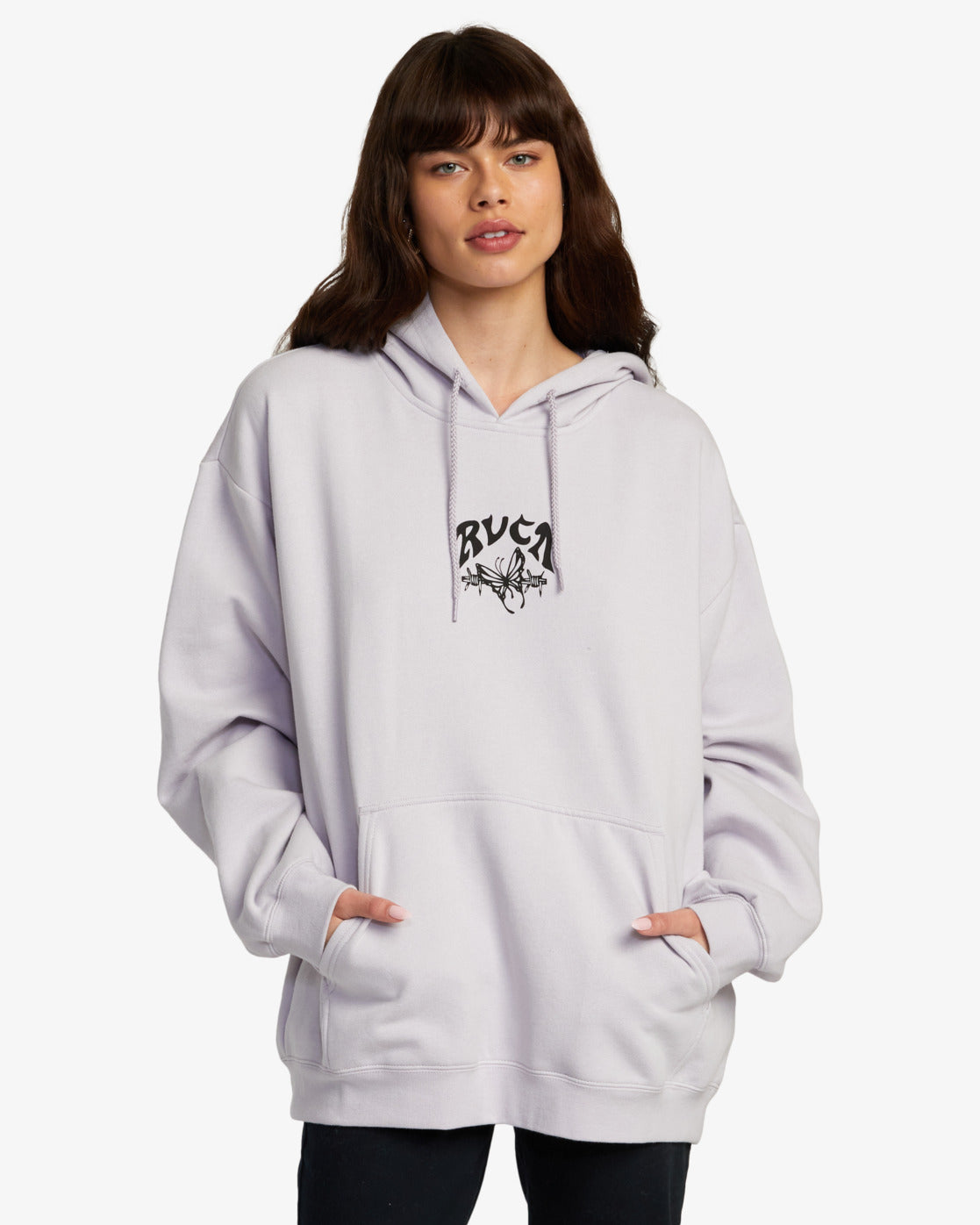 Cool et surdimensionné, le sweat à capuche Baggie Boyfriend pour femme de RVCA est fabriqué en coton mélangé doux avec une poche kangourou et un motif sérigraphié. C'est le sweat-shirt que vous superposerez par-dessus tout cette saison.