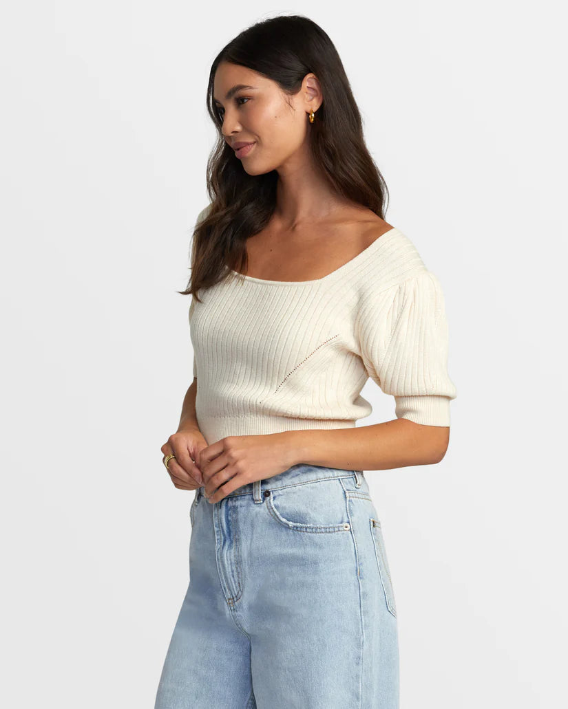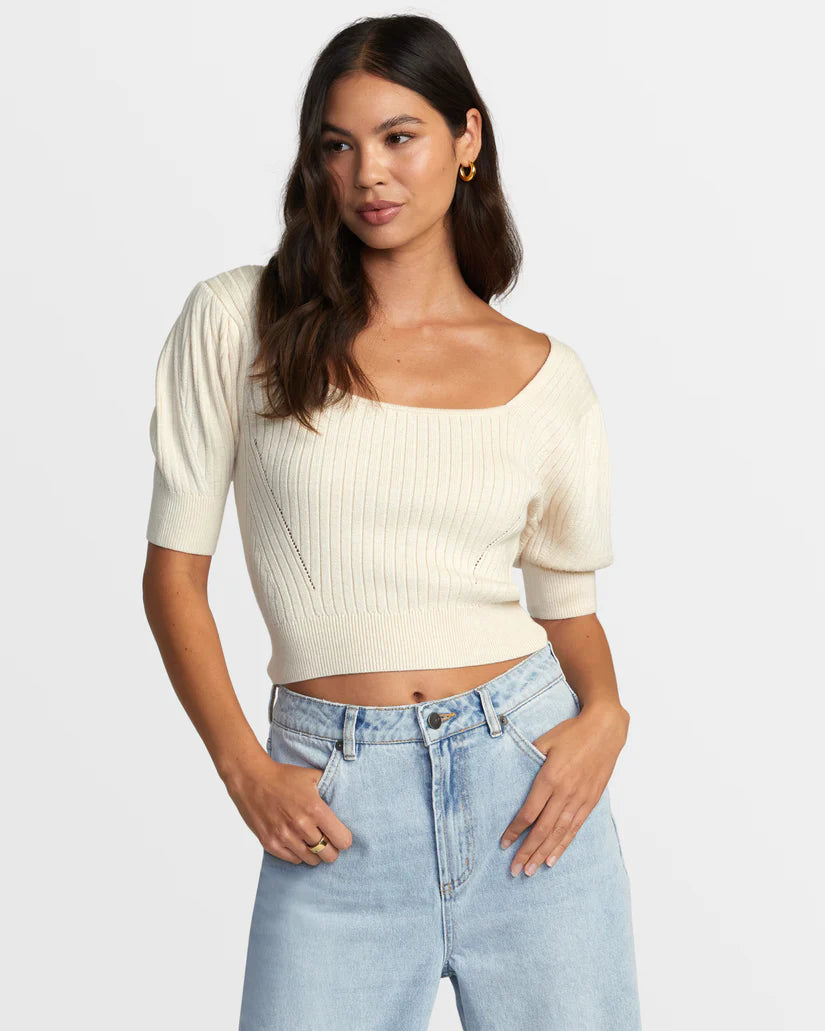 The Kathryn sweater from RVCA's Selects collection casts a stylish spell with its effortless square neck and short balloon sleeves. Crafted from soft viscose blend fabric, this pullover evokes cool comfort with an air of laid-back sophistication. Featured here in the Latte colorway.