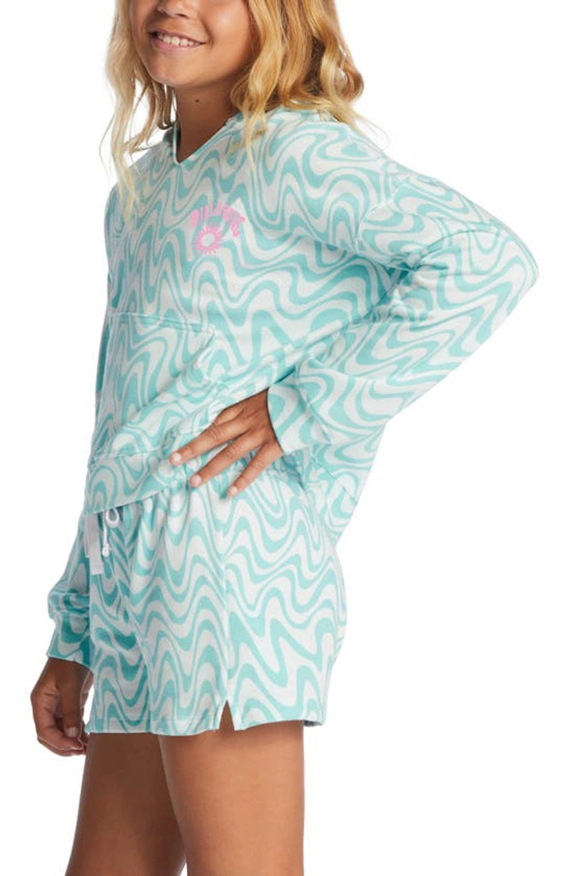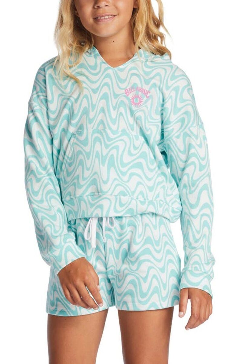 A wild waves print splashes across a lightweight French terry hoodie that your young one will want to wear all season long.