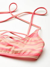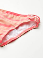 Made for the girl with the untamed mane and attitude, the Wild Dream Tali Set delivers custom tan lines for sunny days. Printed with a bold pink tiger stripe, the girls bikini features a surfable cut with a crossback top. Spaghetti strap details are placed at the center front of the top and at the bottom sides.