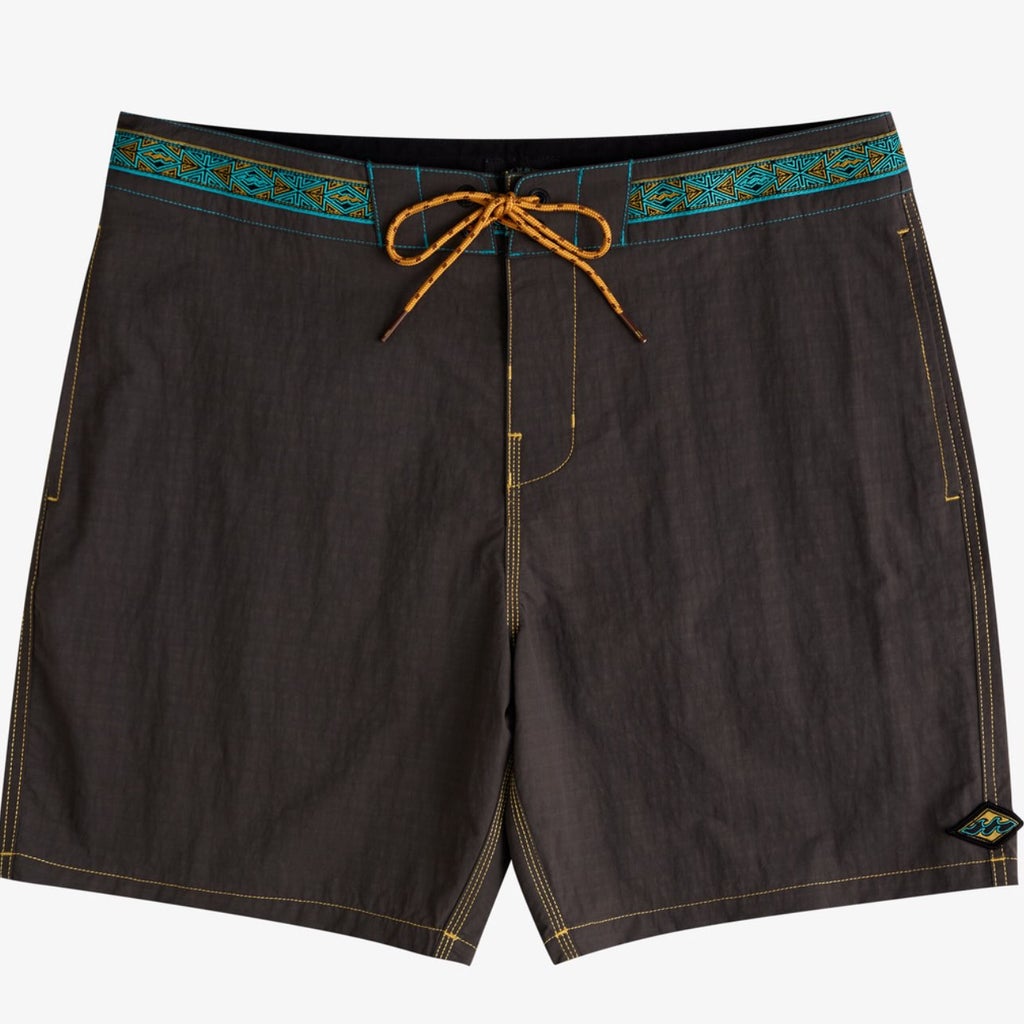 Radness, reincarnated, the Billabong Currents Lo Tides Boardshorts are made from locally sourced discarded fishing buoys and pre consumer recycled nylon. The result is a men’s trunk that looks and feels like a retro boardshort, adding Micro Repel water-repellent coating to keep your trunks lighter and drier for longer. Maintaining a throwback edge, the men’s trunks add a print at the waist and shortened.