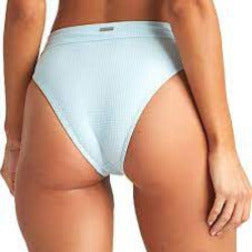 It’s summer somewhere. A bikini that seamlessly blurs the lines between seasons, the Rolling By blends thermal waffle knit texture with a bikini silhouette. The curated solid high waisted bikini bottoms feature a retro-inspired high cut leg for an ultra flattering silhouette that falls just below the belly button. A functional fit, the bikini bottom offers a medium coverage seat.