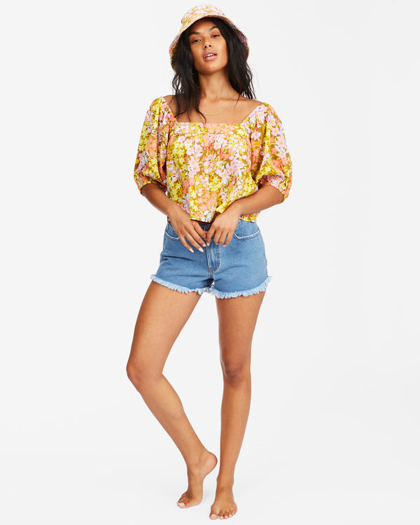 Billabong Women's Beach Daze Puff Sleeve Crop Top