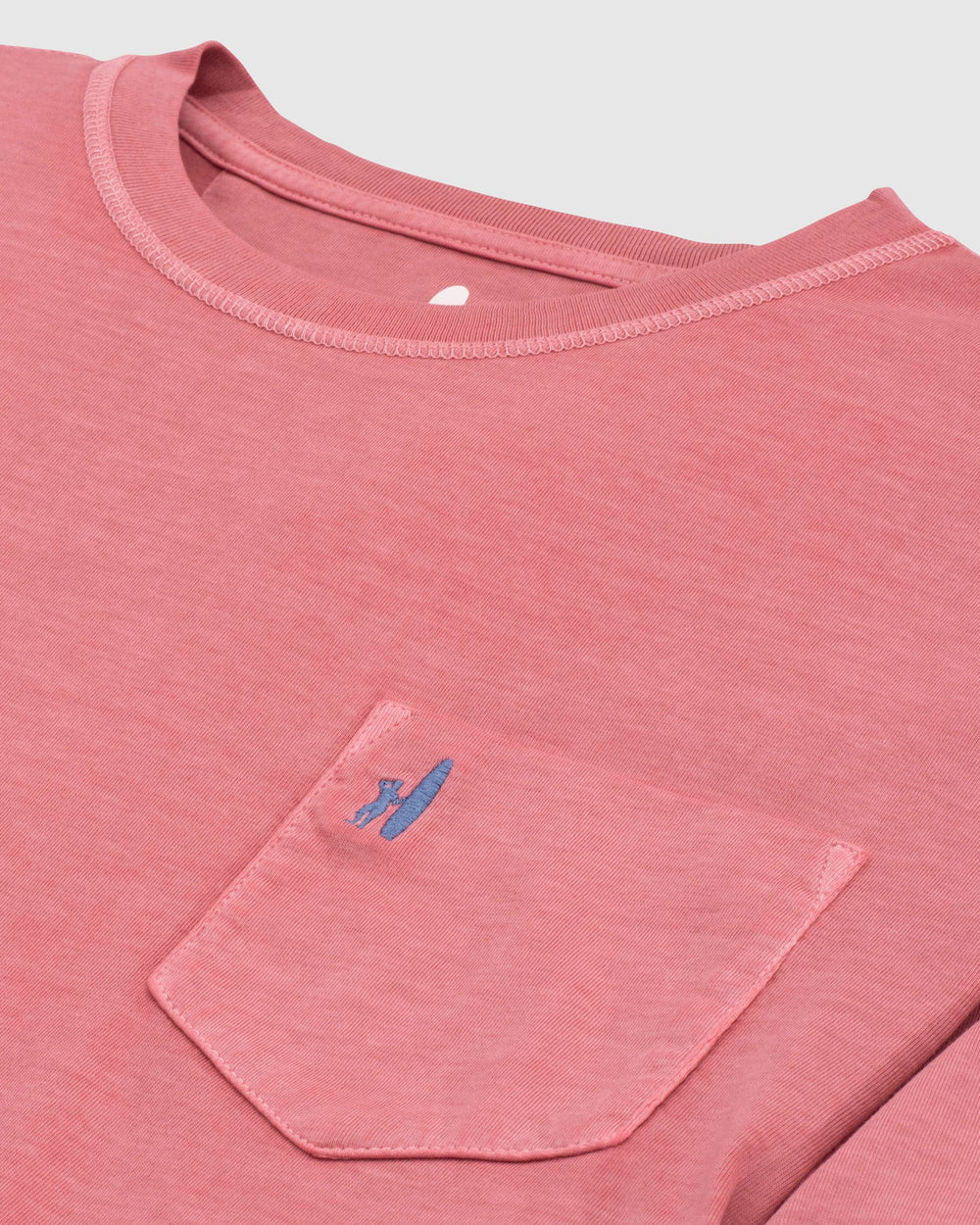 While this T-shirt is an essential, it's anything but basic. The crisp and cool cotton fabric, garment-dyed wash, pocket detail, and signature surfer dude logo will make it so you never want to take this one off.