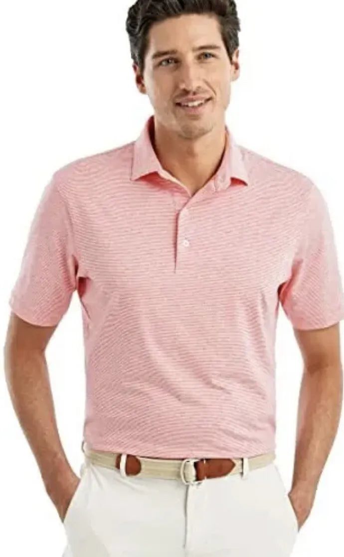 The stripes on this jersey polo are subtle, but will still bring a pop of color to your polo collection. Our moisture-wicking jersey performance fabric will have you feeling cool and comfortable all day long. Silky smooth and super breathable, the Lyndon will soon be your next favorite classic look.