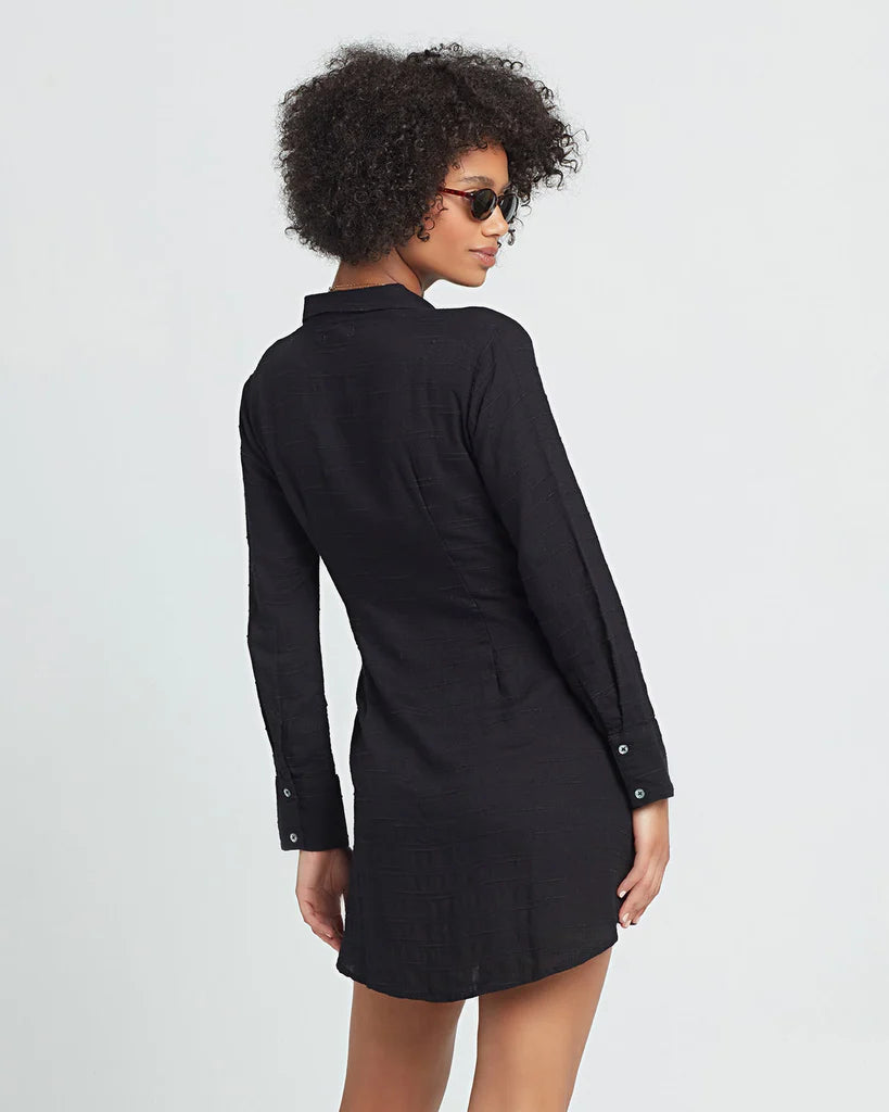 The Daydream Tunic is the perfect blend of comfort and corporate. This relaxed wrap tunic features long sleeves with smart button cuffs and a sharp collar. Wear on its own as a cover-up, or to work over a cami.