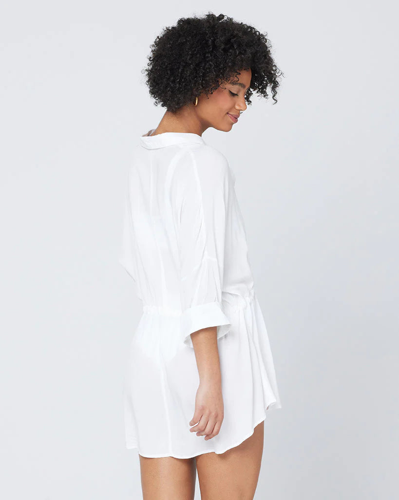 Dare to bare those hard-earned sunkissed legs in our breezy button-down tunic, loosely fitted with a draw chord cinched at the waist.