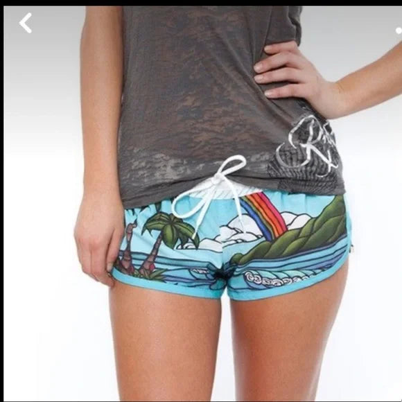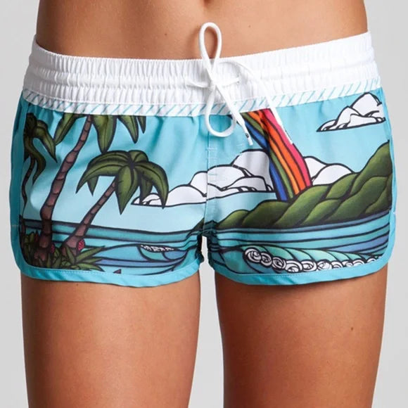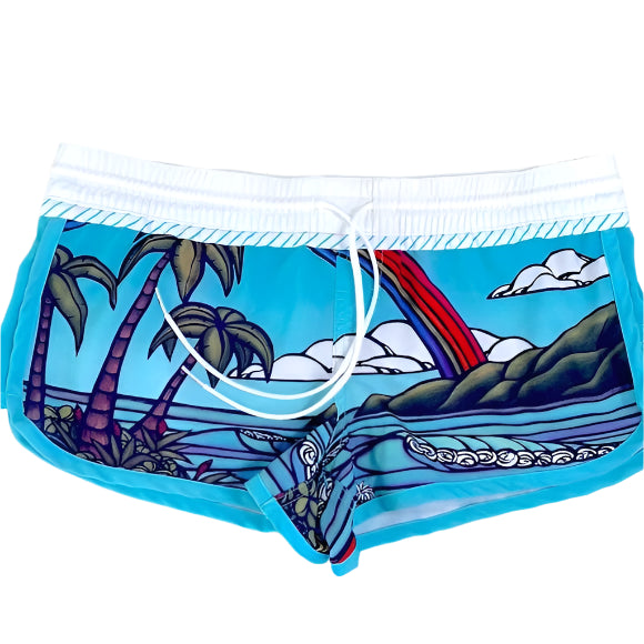 Rip Curl Over The Rainbow Women’s Board Shorts with the artistry of Heather Brown, a local artist on Oahu Hawaii on the North Shore.
