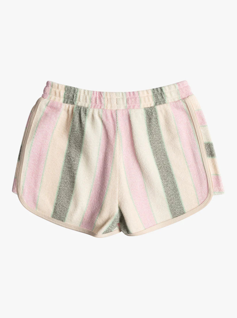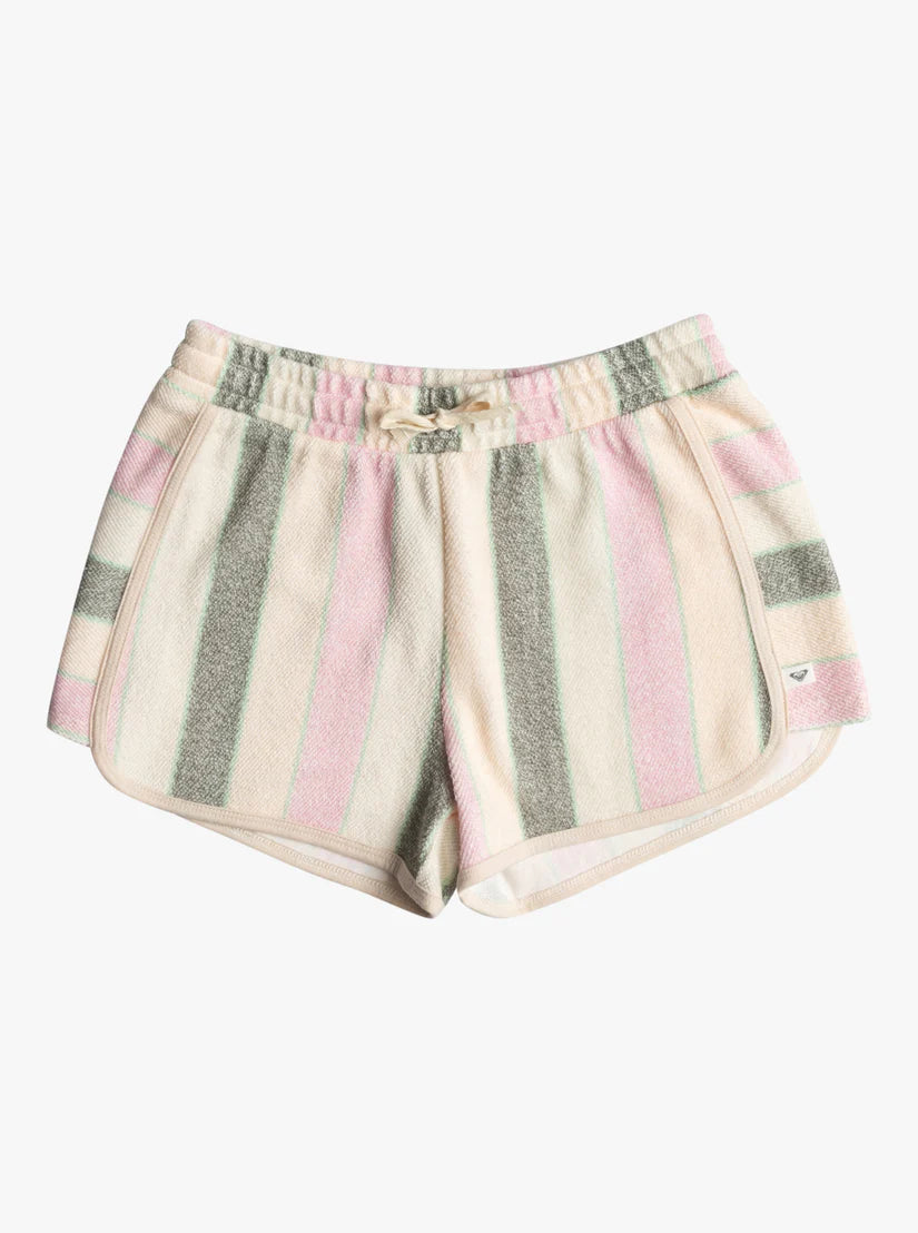 ROXY's Feels Like Summer striped shorts for girls are made of yarn-dyed terry blend fabric. Adding a retro look with a scalloped hem, they feature an elastic waist topped with a drawcord for a perfect fit every time. A ROXY canvas label at the leg completes the look.