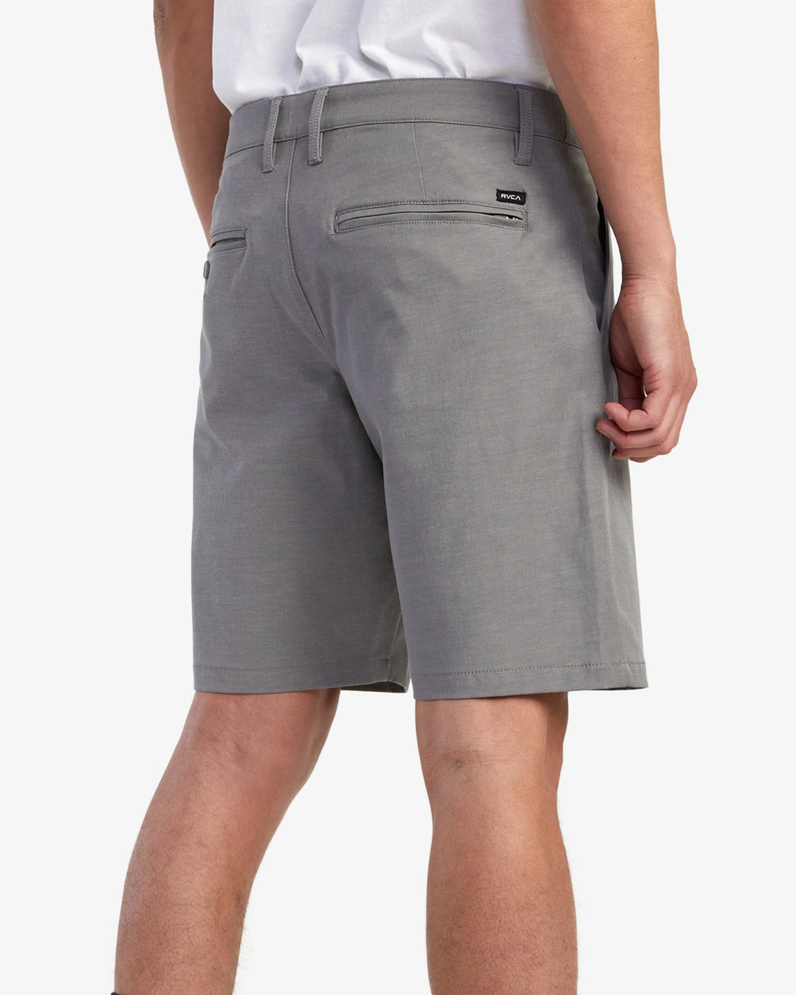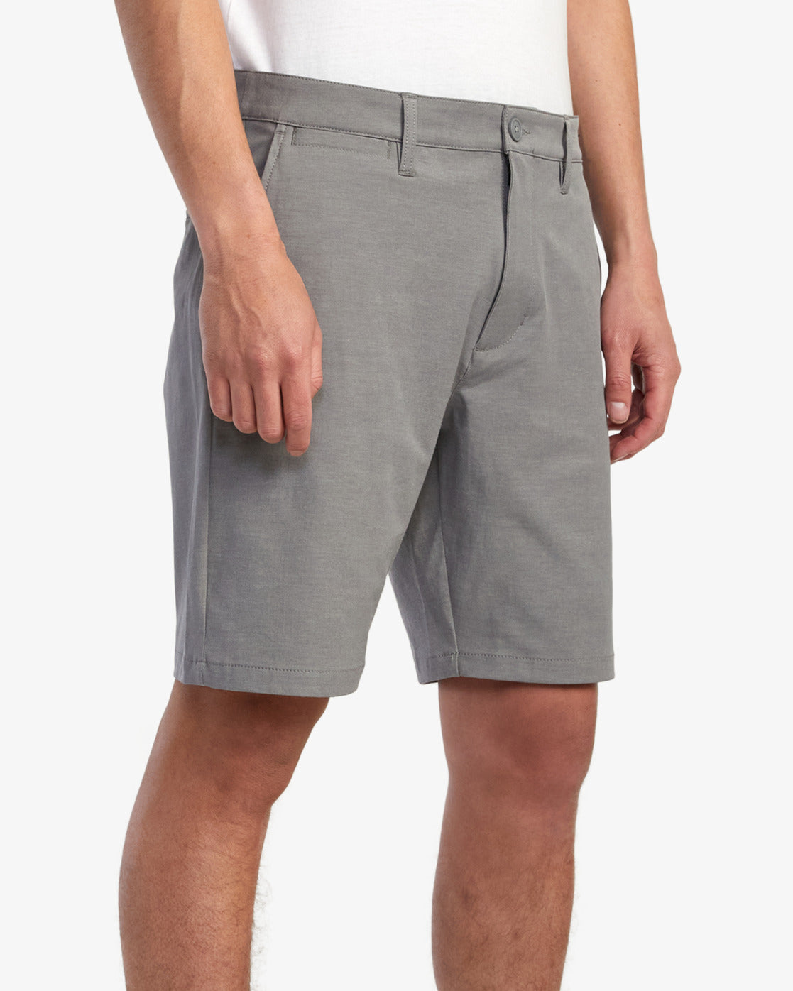 Made of 4-way stretch heathered fabric, these 19" hybrid shorts protect you from the elements with a durable, water-resistant finish. The versatile design features a fly-and-button closure with pockets.