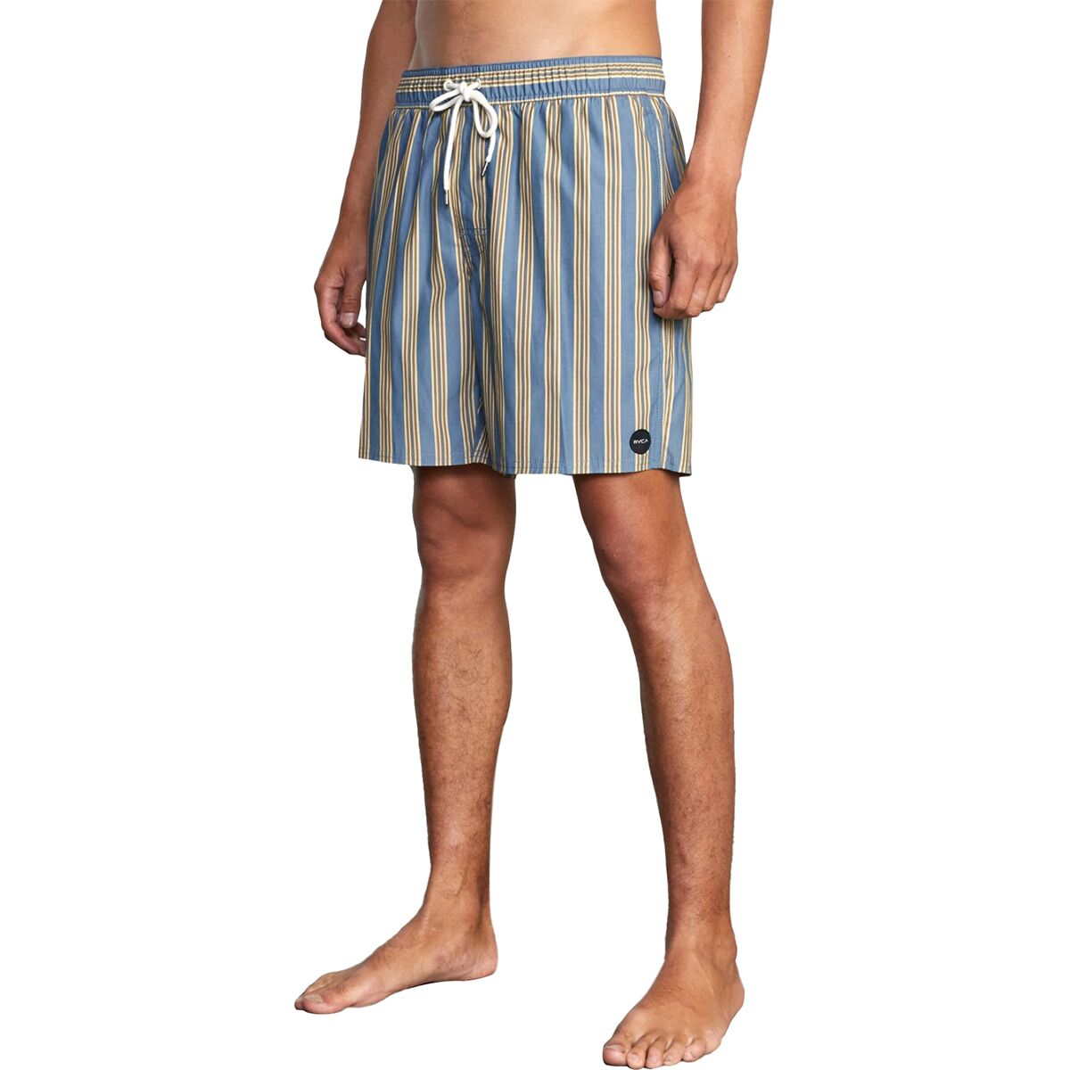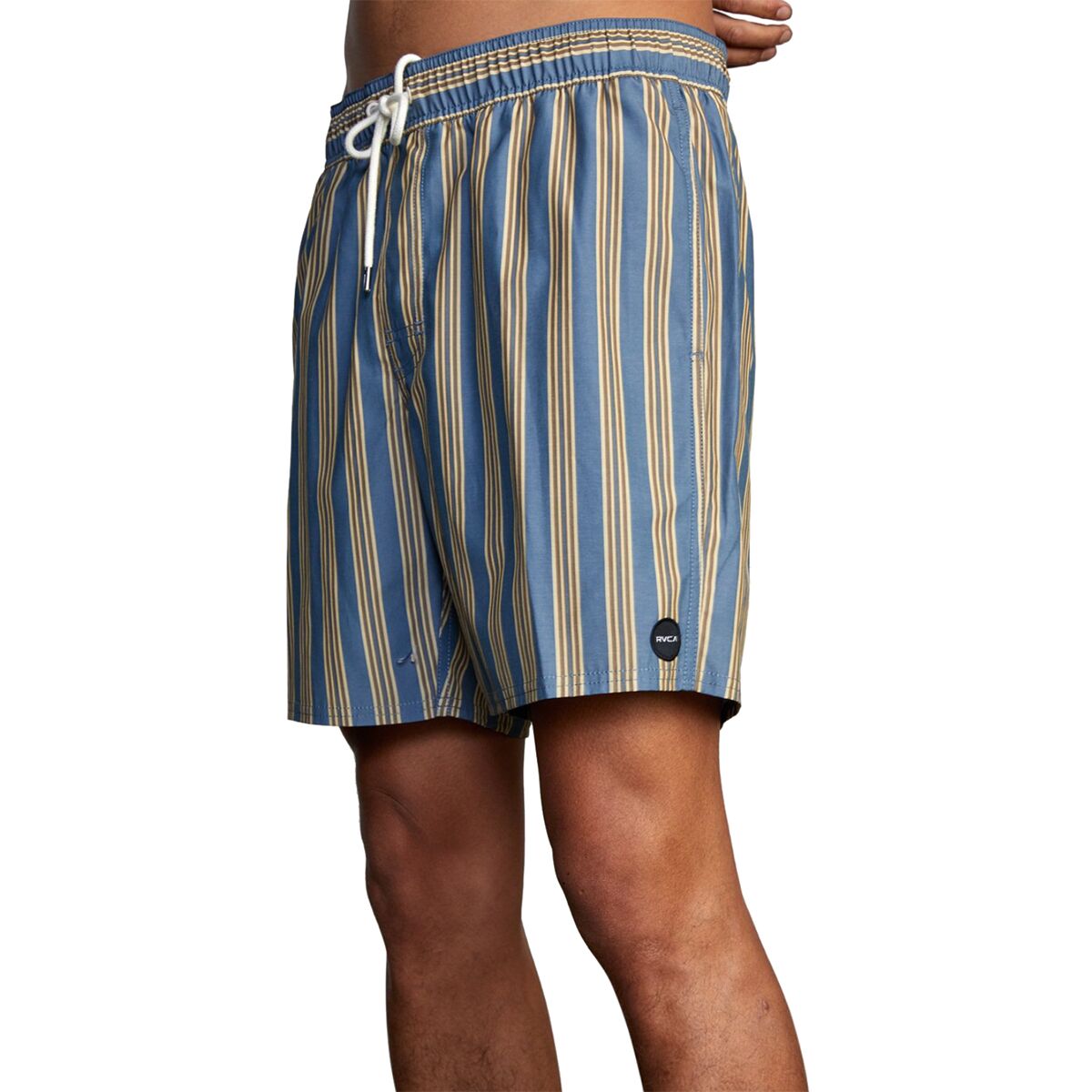 Step up your surf style in the rvca perry elastic boardshorts 17". made from recycled poly cotton fabrics, these elastic waist boardshorts feature an allover custom kelsey brookes print, an adjustable drawcord, side and back pockets, reinforced seams and rvca branding throughout.