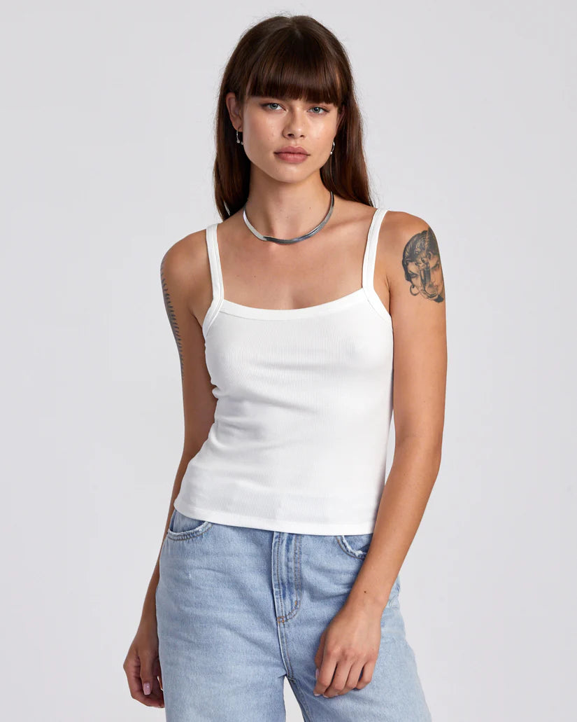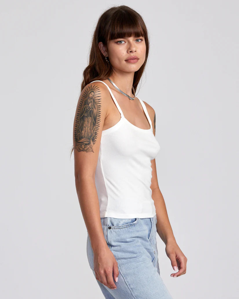 Crafted of soft knit fabric, RVCA Women's Easy tank top keeps it comfy with a fitted shape with a wide-ribbed neck and straps. A must-have basic that balances sporty and stylish.