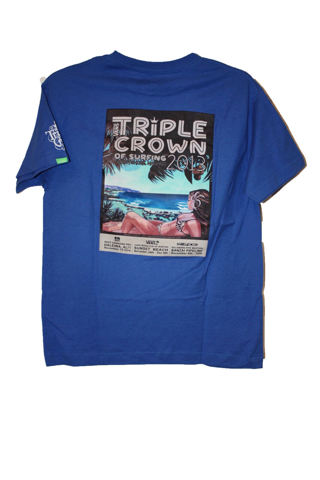 Experience the ultimate in surf style with the Vans Boy's 2013 Tripe Crown of Surfing S/S T. Made from 100% cotton, this tee features a large graphic logo on the back and a smaller logo on the front left chest. Embrace the thrill of the waves in comfort and style.