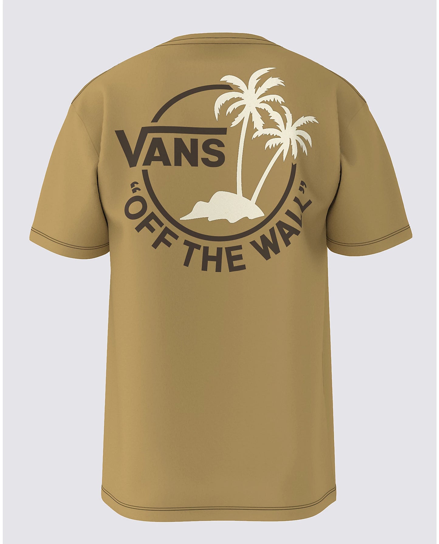 The Classic Mini Dual Palm T-Shirt is a short sleeve crewneck tee made from a heavier weight cotton and features the Vans logo on the front and palm tree inspired graphic on the back.