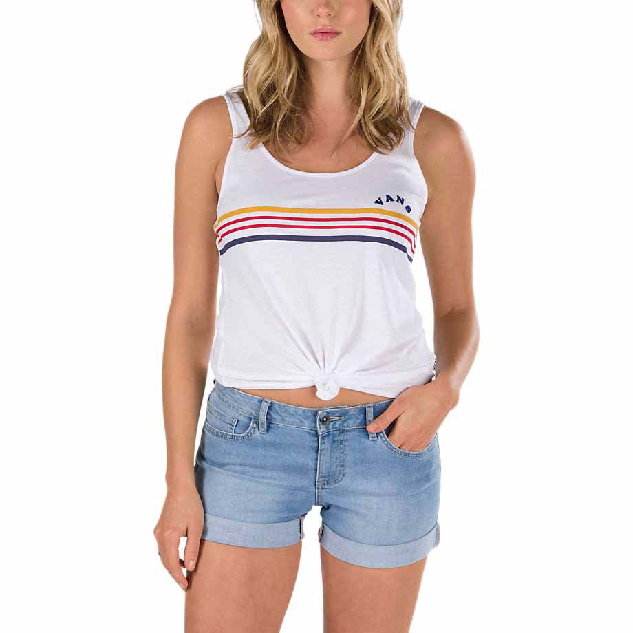 Vans Women's 1966 Stripe Tank is the perfect everyday top. With a classic stripe design, and made from a poly-cotton blend that's comfortable and lightweight, this tank offers a timeless style and reliable performance. Whether you're running errands or just out for a walk, the Vans Women's 1966 Stripe Tank will keep you cool and looking great.