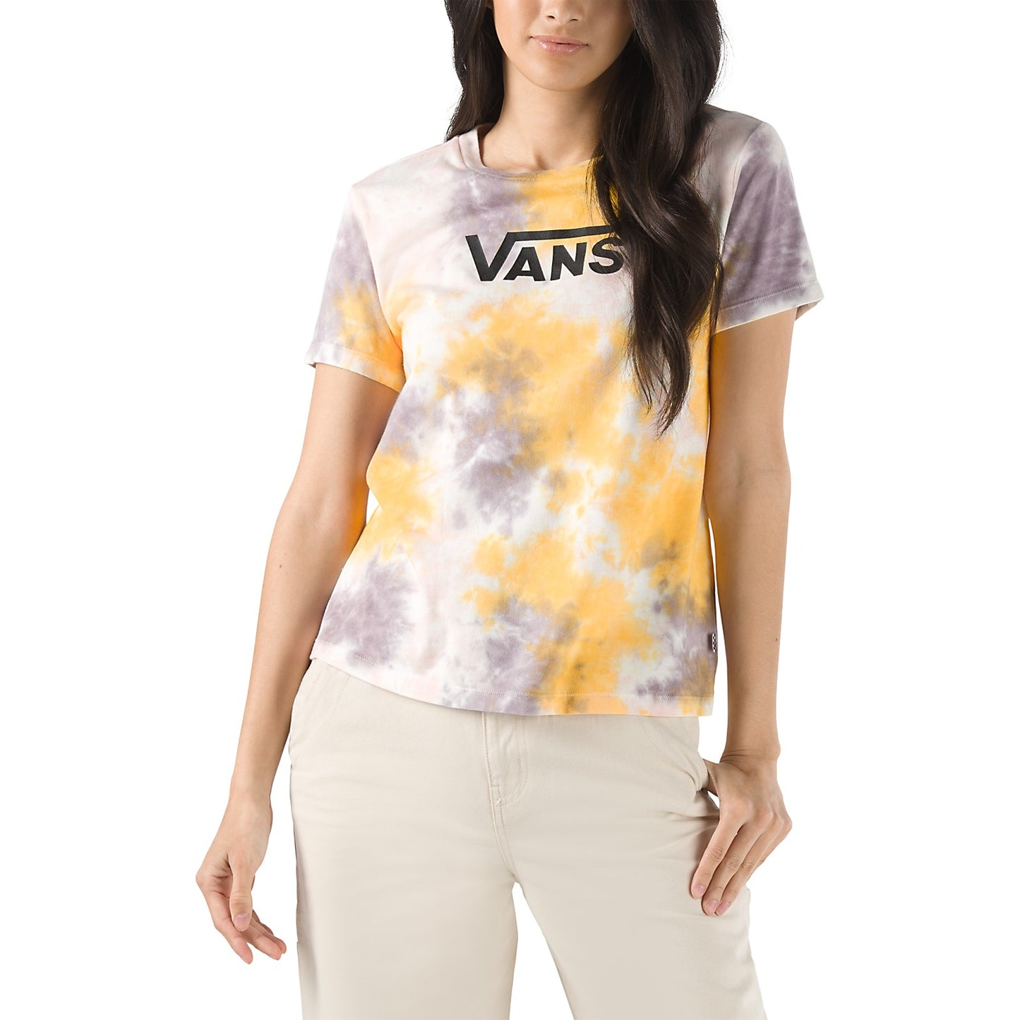 This Vans Women's Interupt Crew Tee is constructed of the highest quality materials, ensuring long-lasting wear and comfort. The classic crew neck fit is complemented by the stylish tie-dye design, allowing you to express your personal style. It's the perfect combination of durability and fashion.