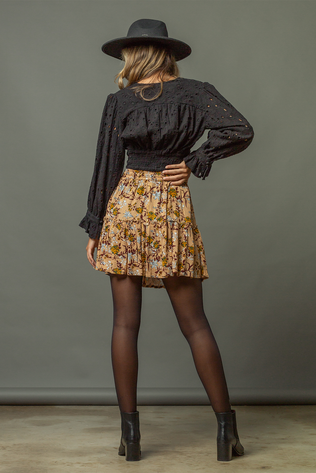 The Marigold Mini Skirt comes with an elastic waist and strings with tassels at the front in a unique autumnal floral print.